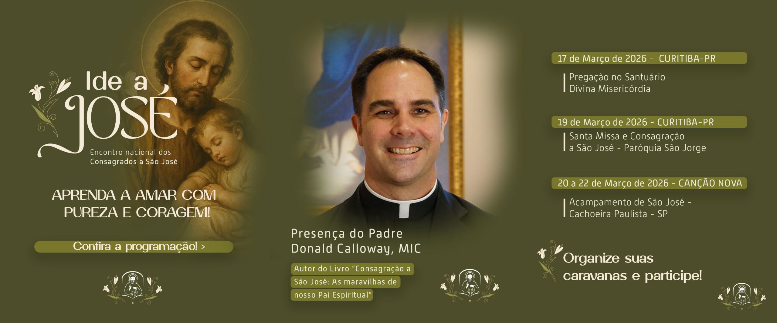 Curitiba se prepara para viver dias intensos de fé, devoção e espiritualidade com a realização do encontro “Ide a São José”, organizado pelo Apostolado da Divina Misericórdia. O evento contará com a presença internacional do sacerdote norte-americano Padre Donald Calloway, autor do reconhecido livro Consagração a São José. Além de sua atuação missionária e evangelizadora, o sacerdote também é conhecido por sua vida simples e ativa, tendo o surf como seu esporte favorito.