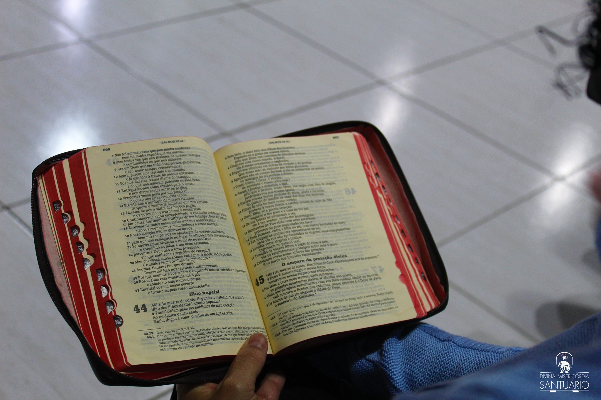 Iniciou-se então a meditação do Salmo 44/45. De forma figurada, o Pregador permitiu que cada um se reconhecesse como protagonista neste Salmo. Então, trouxe o conhecimento do poder de louvar a Deus. O louvor, guiado pelo Espírito Santo, salva e acolhe da forma que as palavras não são capazes.