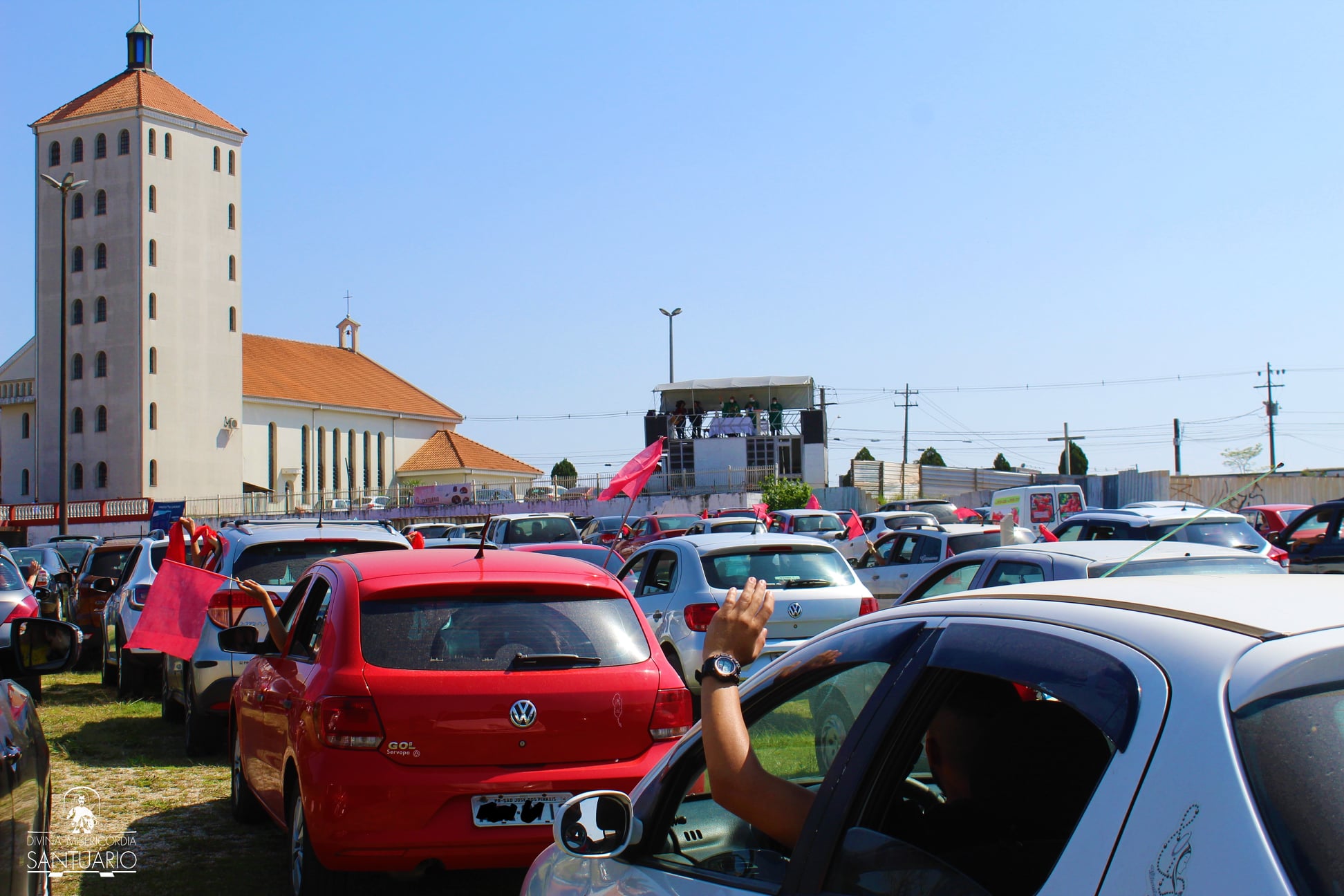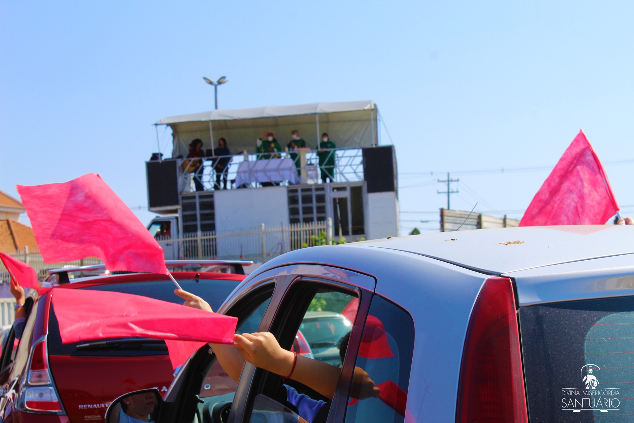 Diante dessa situação, o Santuário da Divina Misericórdia buscou uma alternativa para celebrar a Santa Missa e levar Jesus aos fiéis, mesmo nos momentos mais críticos de contaminação do vírus: a Missa drive-in.