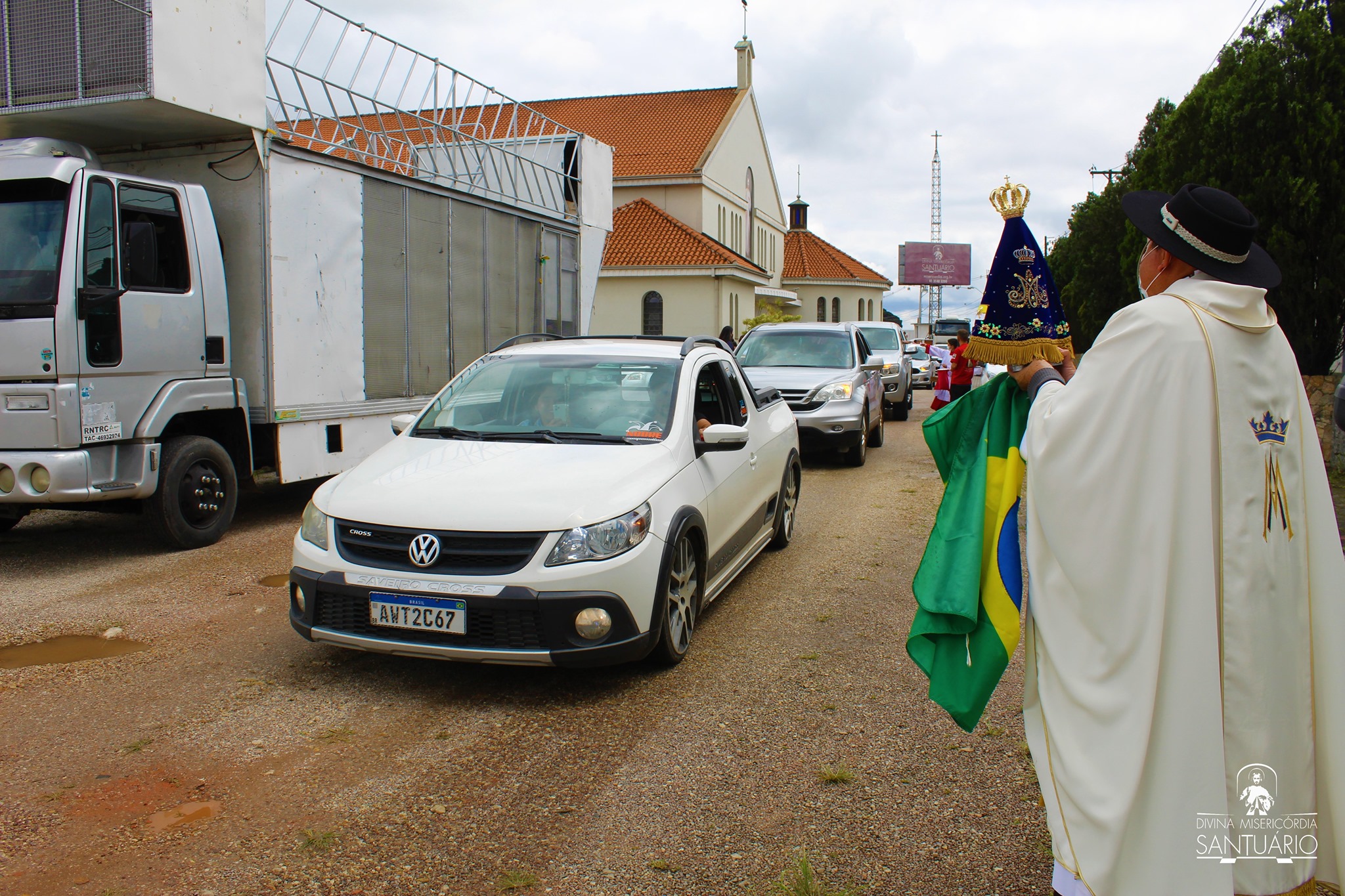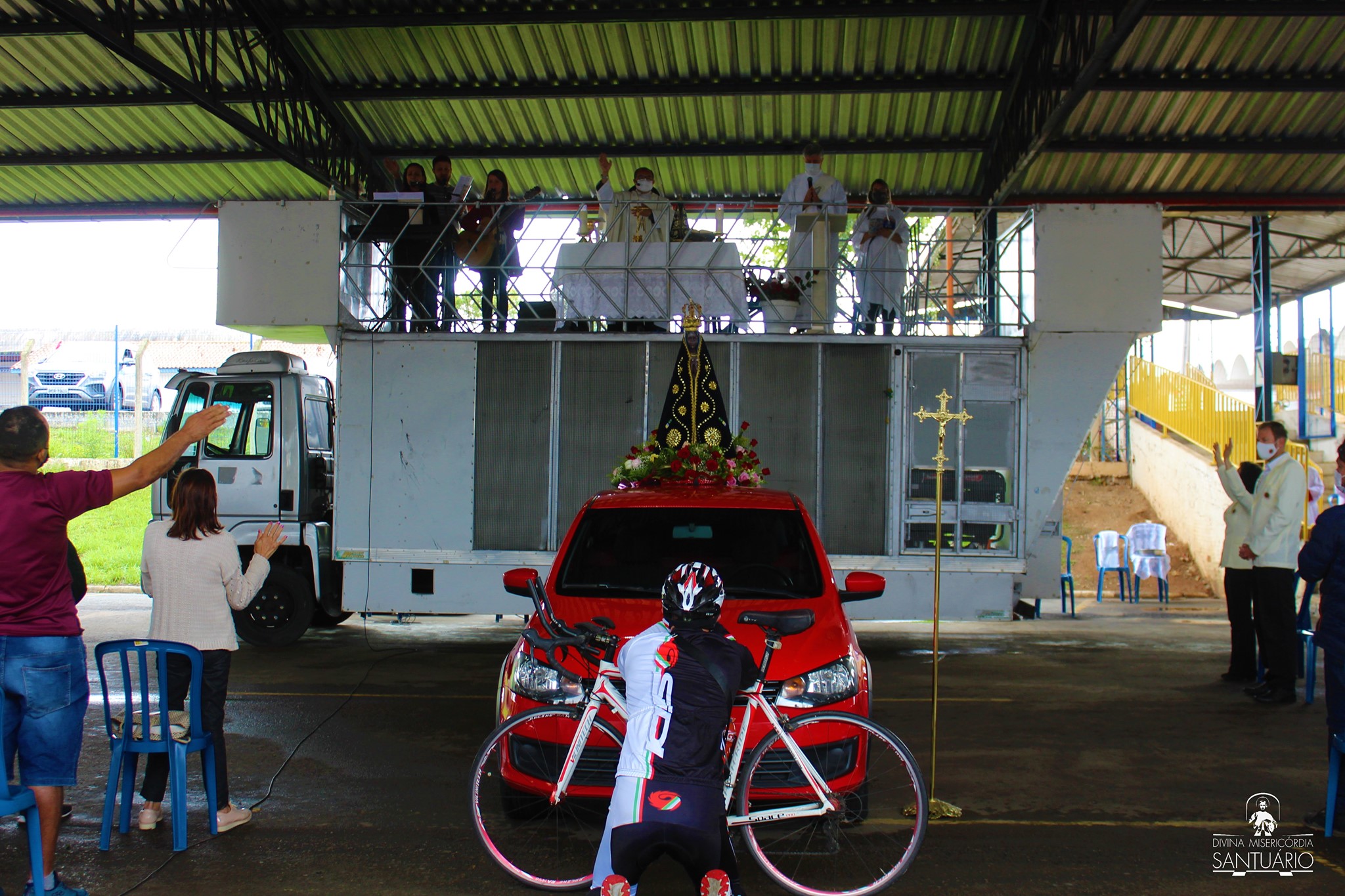 A Santa Missa foi realizada no sistema drive-in, misto com um número limitado de público, que ocupou o espaço permitido, e seguiu as orientações dos atuais decretos governamentais e municipais para a prevenção da covid-19.