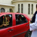 Da Ceasa, seguiu-se, novamente em carreata, até o Santuário, onde os carros e seus ocupantes foram abençoados, conforme a tradição.