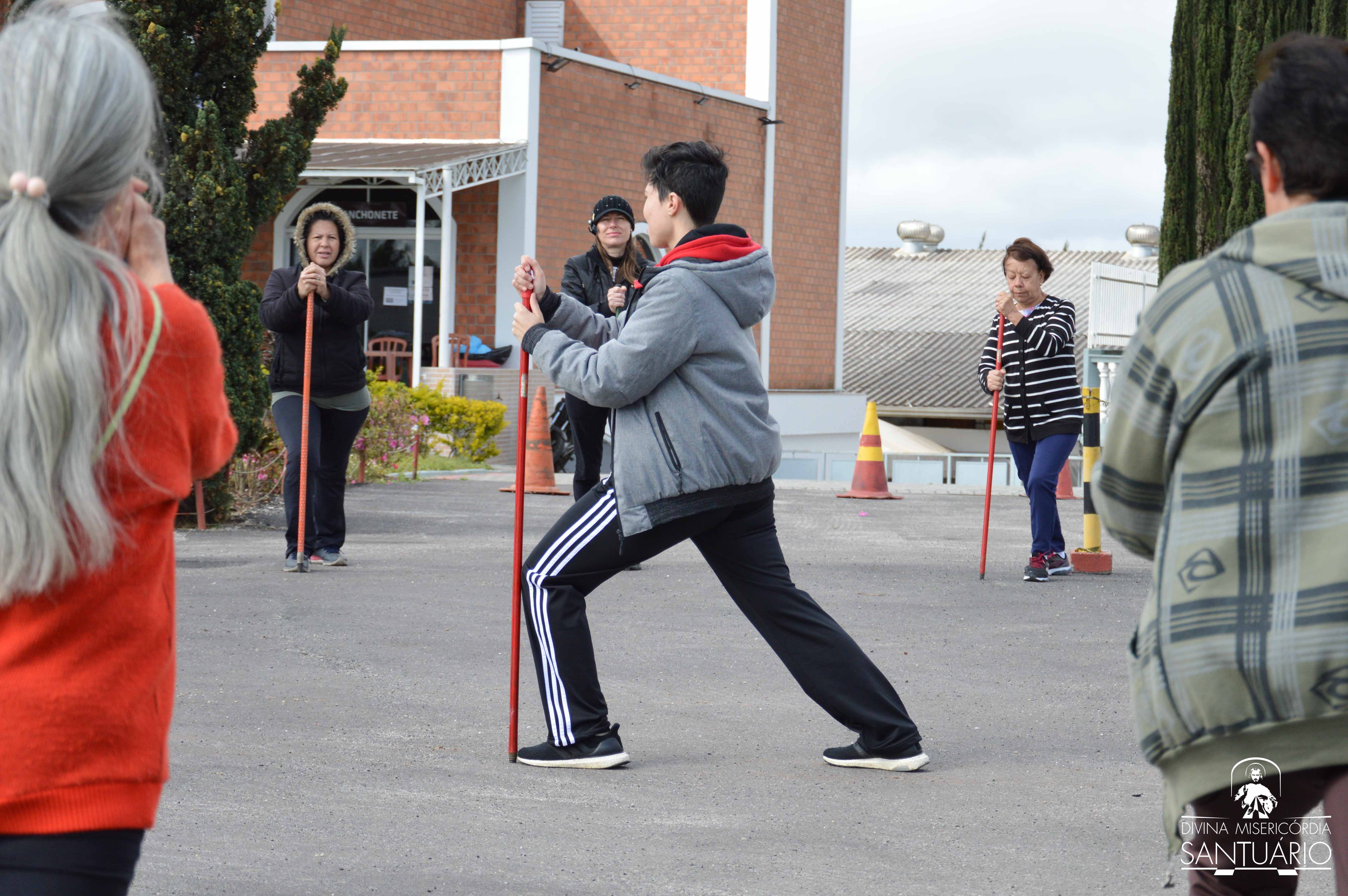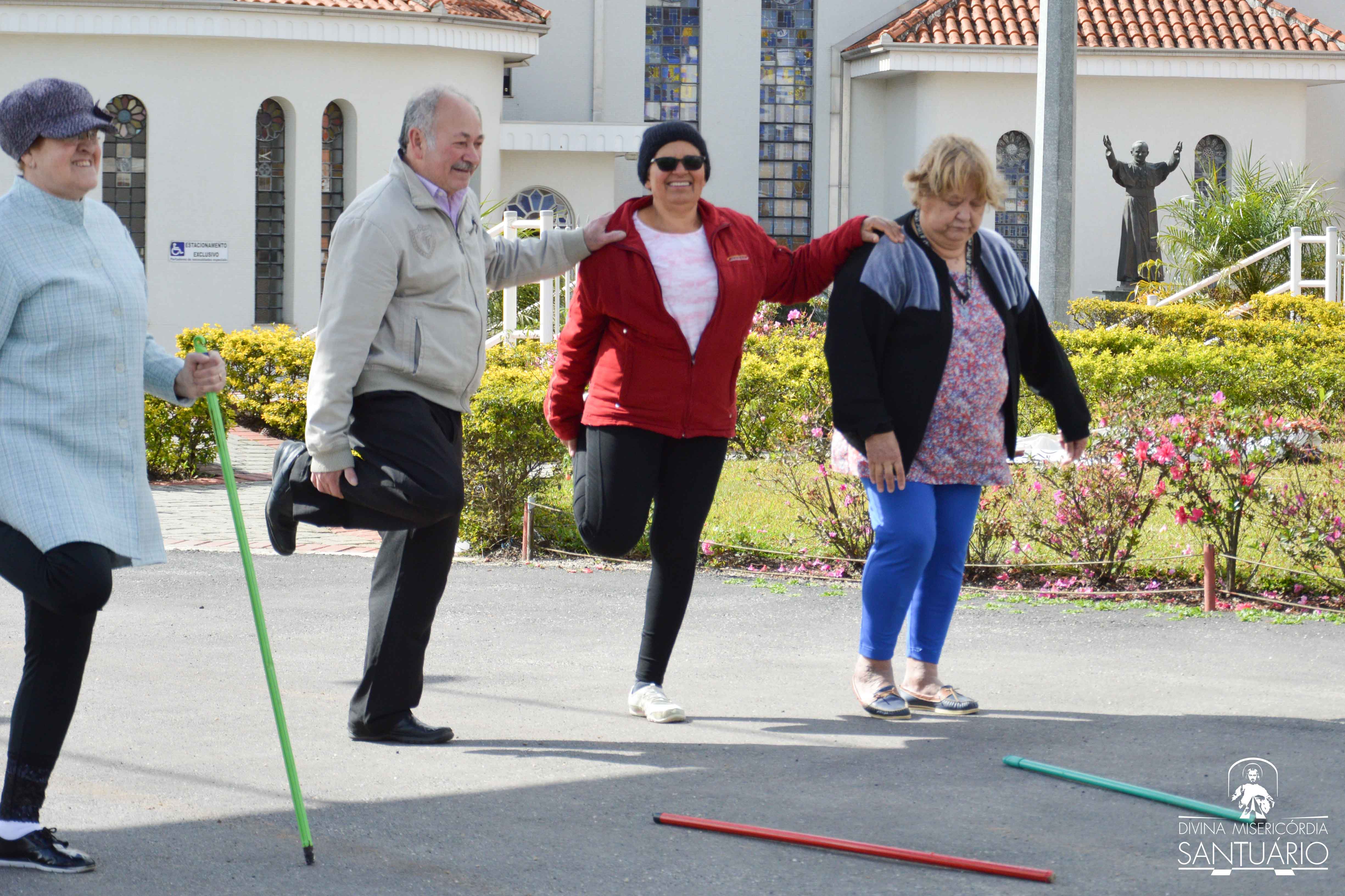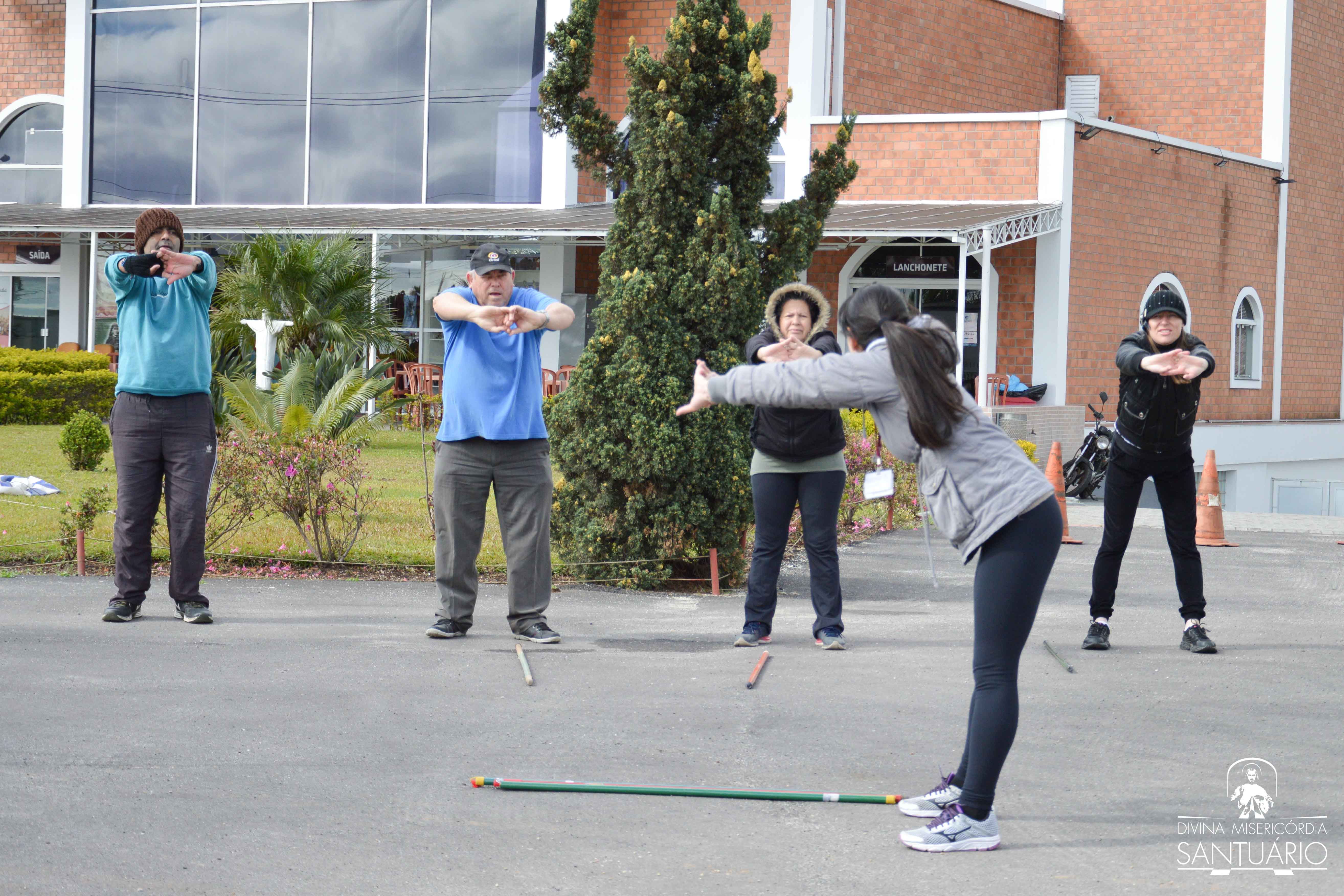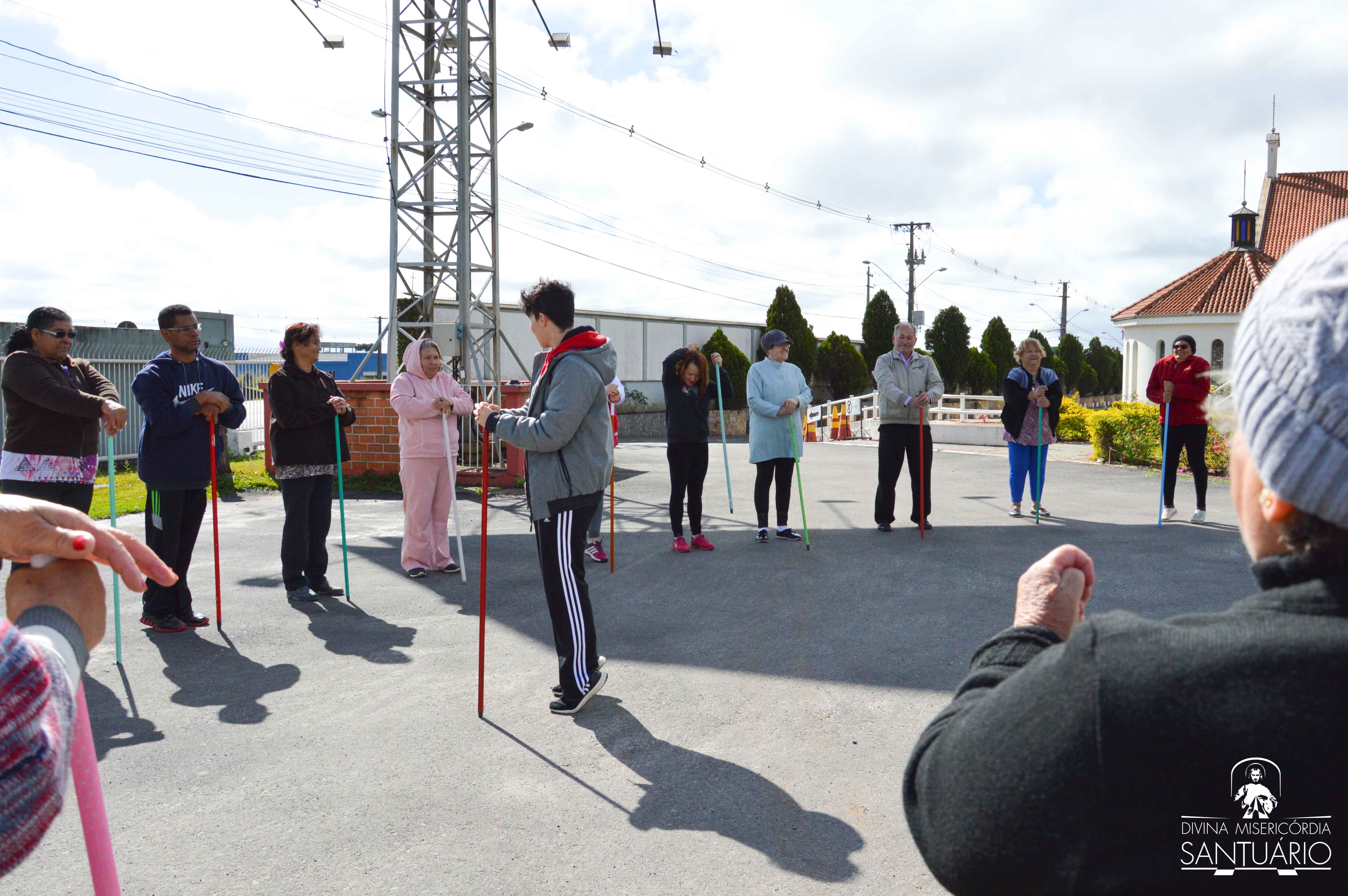 O senhor Martin Prussack – muito conhecido no Santuário por sua dedicação não só na contribuição para construção da igreja, mas por sua entrega nas atividades ao longo desses 24 anos de história – também faz parte do grupo que se reúne todas as Quartas e Sextas-feiras. “Eu fazia num outro lugar antes, mas quando soube que teria aqui no Santuário me animei e vim pra cá. Essa é a terceira vez que estou vindo, venho com a minha esposa”, conta. Martin afirma também que se sente melhor para realizar os trabalhos em casa. “Quando você faz exercício sente mais ânimo!”, incentiva.